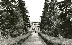 Le parc, la grotte de Lourdes et l'allée de cyprès