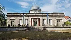 Le bâtiment s'élève au-dessus d'une terrasse et comprend trois ailes. Le bâtiment principal s'ouvre sur le jardin côté sud. On accède par un escalier à la terrasse d'observation et à l'entrée centrale, entourée de hautes colonnes, De chaque côté de l'entrée se trouvent deux salles méridiennes dont les colonnes méridiennes caractéristiques sont visibles de l'extérieur. Le haut rez-de-chaussée est surplombé par un grenier bas et un toit plat accessible aux observateurs. Le centre du bâtiment est couronné par un dôme, qui n’est pas à l’origine utilisé à des fins d’observation, mais uniquement comme élément de style architectural. Sur le côté nord du bâtiment sont construites deux ailes latérales basses de deux étages contenant des espaces de vie et de travail.[réf. nécessaire]