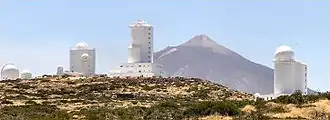 Télescopes de l'Observatoire du Teide, au fond le sommet du Teide.