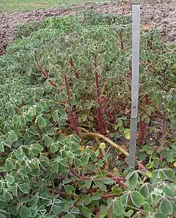 Plante vivace à tiges succulentes, rampantes puis redressées, à feuilles charnues trifoliolées d'un vert brillant dont les fleurs, petites, sont jaune d'or. Floraison estivale. La floraison est sporadique sous nos climats tempérés jusqu'en novembre, la plante n'étant que partiellement fleurie.