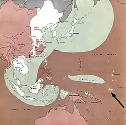 Dans le reste de l'océan Pacifique, l'avancée japonaise se poursuit, ils occupent les îles Gilbert au nord-est de Nauru à Noël 1941, en , ils prennent Rabaul au sud de Nauru et y établissent une importante base[8]. L'île est alors prise en tenaille entre les deux fronts japonais. Le a lieu le bombardement de Darwin : pour la première fois de son histoire, l'Australie est attaquée sur son sol par une puissance étrangère. L'annonce de cette opération laisse la population de l'île en état de choc[8].