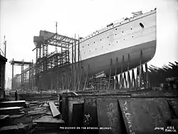 La construction se fait sous la supervision du surintendant de marine de la compagnie, le capitaine John G. Cameron et de l'Amirauté britannique, qui compte utiliser le navire comme croiseur auxiliaire en temps de guerre. Elle implique des moyens inédits pour les chantiers. Un portique de 500 tonnes est en effet construit pour abriter la coque en construction et supporter grues, lampes et machines à riveter. L'Oceanic est par ailleurs le premier navire construit à l'aide de riveteuses hydrauliques, qui facilitent le travail des quelque 1 500 ouvriers travaillant sur le paquebot. Les chantiers sont alors très actifs, puisqu'ils achèvent également le Cymric, et doivent également construire les cinq navires de classe Jubilee. Ces constructions contribuent à dynamiser la région de Belfast[1].