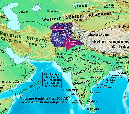 - ↑ La même carte en 565 fait apparaître l'Oddiyana en 30: Voir en ligne.