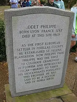 Odet Philippe est considéré comme le premier colon permanent non autochtone du comté de Pinellas Floride, il y aurait introduit le pamplemoussier (Citrus paradisi var. 'Duncan') ainsi que la culture d'autres agrumes et la production de cigares dans sa plantation de Sainte-Hélène, à Safety Harbor, aujourd'hui Philippe Park. Sa biographie est largement romancée.