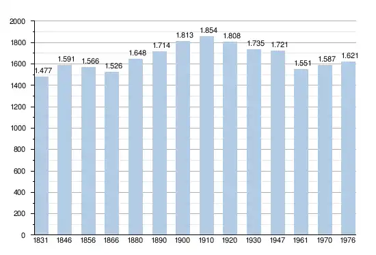 - Sources : INS, Rem. : 1831 jusqu'en 1970 = recensements, 1976 = nombre d'habitants au 31 décembre[2].