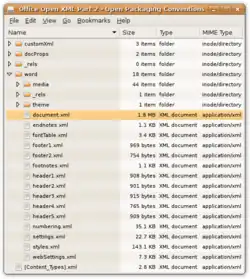 Originellement introduit par Microsoft, puis revu dans le cadre de sa standardisation par l’ECMA, ce format est structuré selon l’Open Packaging Convention[7] qui définit un système de stockage des données flexible en utilisant une navigation logique à base de relations. La description sémantique des données se fait par l’ensemble des schémas XML normalisés.