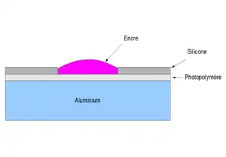 L'offset par voie humide est fondée sur l'antagonisme entre l'eau et la graisse qui sont non miscibles. La plaque offset possède une base, souvent en aluminium servant de support à deux couches superposées : une couche hydrophile, généralement un sel, surmontée d'une couche photosensible lipophile, généralement en cuivre ou en polymère.
