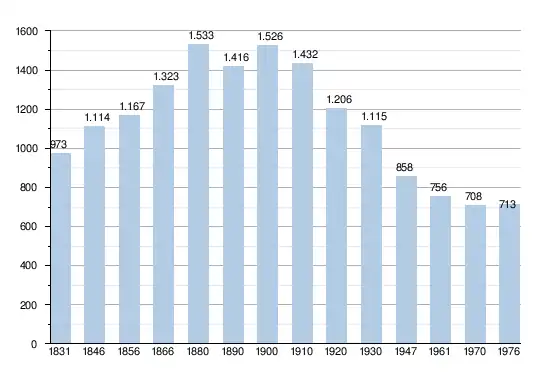 - Source: DGS, 1831 à 1970=recensements population, 1976= habitants au 31 décembre
