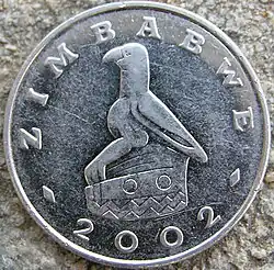 L’oiseau Zimbabwe sculpté dans la pierre est un emblème national du Zimbabwe, qui apparaît sur les drapeaux et armoiries nationaux tant du Zimbabwe que de la Rhodésie du Sud, ainsi que sur les billets et pièces de monnaie. Il représente probablement l’aigle bateleur des savanes (Terathopius ecaudatus).