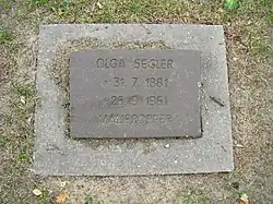 - (de) Cet article est partiellement ou en totalité issu de l’article de Wikipédia en allemand intitulé « Olga Segler » (voir la liste des auteurs).