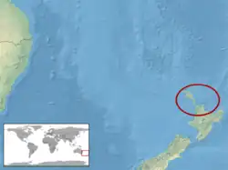 Cette espèce est endémique de petites îles situées à l'Est de l'île du Nord en Nouvelle-Zélande[1].