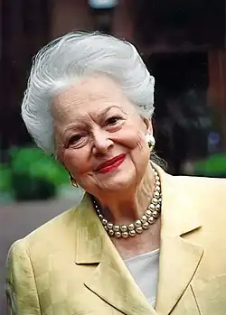 Olivia de Havilland, née le à Tokyo (Japon) et morte le [1] dans le 16e arrondissement de Paris (France), est une actrice britannique de naissance, naturalisée américaine puis française[2],[3],[4]. Sœur de l'actrice Joan Fontaine, et ayant joué dans 49 films, elle a été considérée après la mort de l'acteur Kirk Douglas en , comme la dernière « légende vivante » de l'âge d'or de Hollywood[5],[6] et un témoin de cette époque, à l'image de Norman Lloyd ou Marsha Hunt.