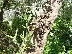 Les plus vieux troncs que l'on puisse observer sont cependant ceux des arbres cultivés, car les cultivateurs éliminent régulièrement les rejets, s'ils veulent conserver le tronc ancêtre. Si cet entretien est interrompu, les vieux arbres s'empressent de donner de nombreuses jeunes pousses.
