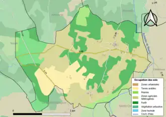 L'occupation des sols de la commune, telle qu'elle ressort de la base de données européenne d’occupation biophysique des sols Corine Land Cover (CLC), est marquée par l'importance des territoires agricoles (59,3 % en 2018), en augmentation par rapport à 1990 (58,2 %). La répartition détaillée en 2018 est la suivante : zones agricoles hétérogènes (41,1 %), forêts (32,3 %), terres arables (12 %), milieux à végétation arbustive et/ou herbacée (8,4 %), prairies (6,1 %)[18].