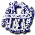 Équipe de rugby du FC Marseille en 1898-1899 portant le maillot noir à étoile mauve, avec le blason indiquant la devise « Droit au but ».