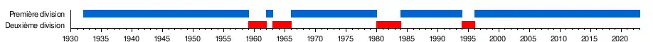 L'Olympique de Marseille adhère au groupement des clubs professionnels et intègre le nouveau Championnat de France professionnel créé en 1932. Cette adhésion, donnant le statut de club professionnel au club olympien, entraîne un remaniement de toute son organisation avec la nomination d'un président, d'un secrétaire général et d'un trésorier[26]. Pour sa première saison en professionnel dans ce tout nouveau championnat, les joueurs de l'OM terminent second de leur poule derrière l'Olympique lillois (qui finira champion de France)[27],[A 3].