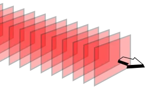 Dans le cas de la lumière polarisée linéairement, l'intensité du champ de plan en plan varie d'un maximum dans une direction, jusqu'à zéro, et ensuite jusqu'à un autre maximum dans la direction opposée.