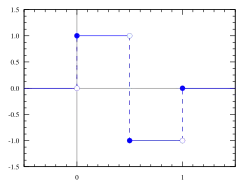 L'ondelette de Haar, ou fonction de Rademacher, est une ondelette créée par Alfréd Haar en 1909[1]. On considère que c'est la première ondelette connue. Il s'agit d'une fonction constante par morceaux, ce qui en fait l'ondelette la plus simple à comprendre et à implémenter. L'ondelette de Haar peut être généralisée par ce qu'on appelle le système de Haar.