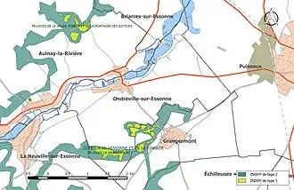 L’inventaire des zones naturelles d'intérêt écologique, faunistique et floristique (ZNIEFF) a pour objectif de réaliser une couverture des zones les plus intéressantes sur le plan écologique, essentiellement dans la perspective d’améliorer la connaissance du patrimoine naturel national et de fournir aux différents décideurs un outil d’aide à la prise en compte de l’environnement dans l’aménagement du territoire. Le territoire communal d'Ondreville-sur-Essonne comprend deux ZNIEFF[INPN 1].