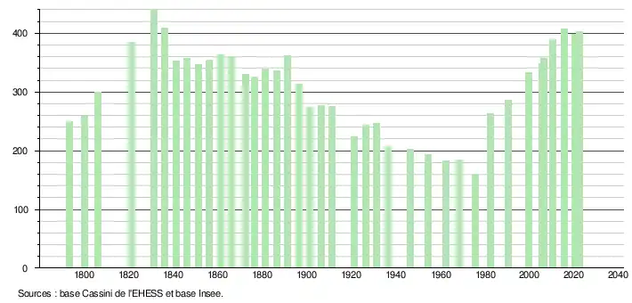 - ↑ Fiches Insee - Populations de référence de la commune pour les années 2006, 2007, 2008, 2009, 2010, 2011, 2012, 2013, 2014, 2015, 2016, 2017, 2018, 2019, 2020, 2021 et 2022.