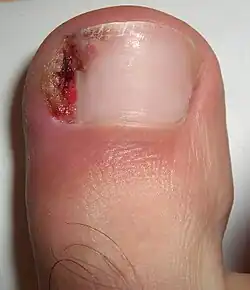 Un ongle incarné (ou onychocryptose) est une inflammation de la peau due à un enfoncement anormal de l'ongle dans la chair[1].