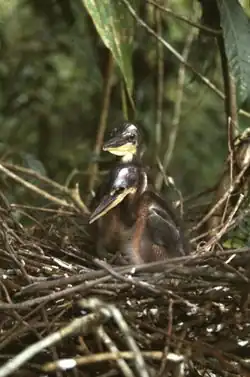 - 1 2 Reynaud, P.A. et Kushlan, J.A., « Nesting of the Agami Heron », Waterbirds, , p. 308-311 (lire en ligne)