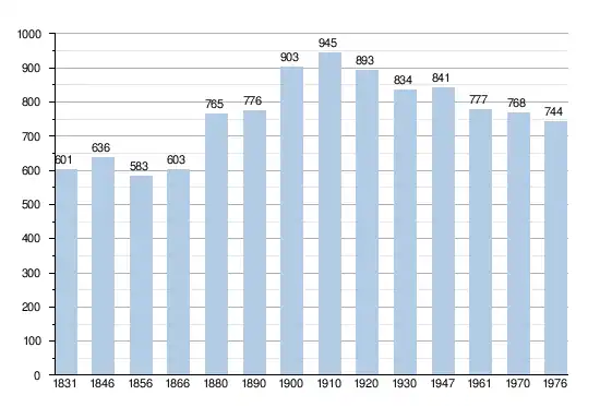 - Sources : INS, Rem. : 1831 jusqu'en 1970 = recensements, 1976 = nombre d'habitants au 31 décembre[4].