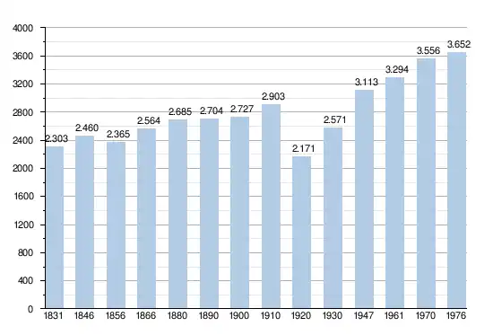 - Sources : INS, Rem. : 1831 jusqu'en 1970 = recensements, 1976 = nombre d'habitants au 31 décembre[2].