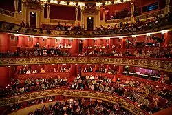 La salle offre 1 050 places et se compose d'un parterre avec loges d'orchestre, d'un balcon, de deux galeries, d'un poulailler et d'un plafond plat « décollé ». Grâce à l'utilisation du béton pour sa construction, les balcons peuvent tenir sans colonnes, évitant ainsi de nombreuses places aveugles. Réalisée dans les tons de rouge, or et blanc, décorée de stucs, d'ornements et de statues, l'unité de la salle est particulièrement remarquable.