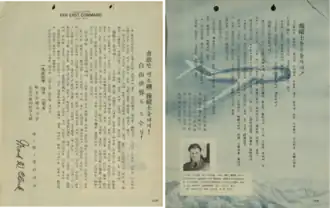 - ↑ « …To all brave pilots who wish to free themselves from the Communist yoke and start a new, better life with proper honor […] you are guaranteed refuge, protection, humane care and attention. If pilots so desire, their names will be kept secret forever… »