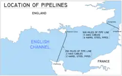 Après un test du tube HAIS à grande échelle (45 milles marins soit 93 km) entre Swansea, au Pays de Galles, et Watermouth, en Cornouailles, la première canalisation à destination de la France fut installée le , dépassant les 70 milles marins (130 km) depuis l'Île de Wight jusqu'à Cherbourg ; mais elle ne fut opérationnelle qu'à partir du . Une canalisation HAIS et deux HAMEL la suivirent. Au fur et à mesure que les combats se rapprochèrent de l'Allemagne, 17 autres oléoducs (11 HAIS et 6 HAMEL) furent installés entre Dungeness et Ambleteuse, dans le Pas-de-Calais.