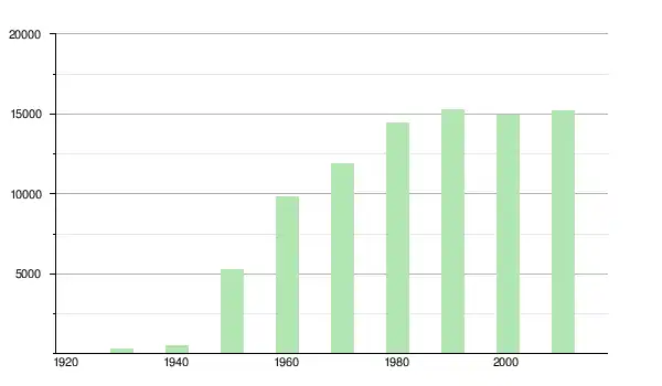 | 1950 | 5 271 | ▲ +960,56 % | |