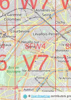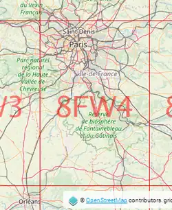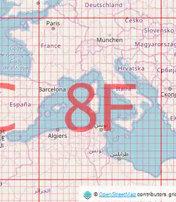 L'origine de la grille se trouve au sud-ouest (le premier carré, noté "22") et s'étend jusqu'à l’extrême nord-est (dernier carré, noté "CV"), soit du coin en bas à gauche vers la droite et le haut). Ainsi, l'origine des coordonnées géographiques (longitude 0°; latitude 0°) correspond au milieu des zones 6C et 6F.