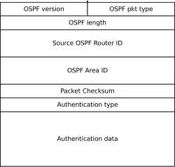 Les paquets OSPF peuvent faire l'objet de deux formes d'authentification, la première consiste en un mot de passe transmis en clair dans le paquet, la seconde consiste en une fonction de hachage MD5 calculée sur le paquet et un mot de passe partagé.