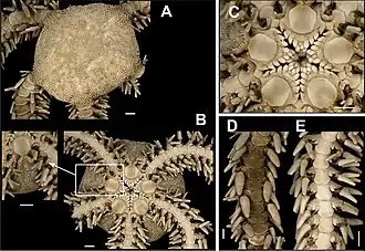 - ↑ O'Hara, T. D.; Hugall, A. F.; Cisternas, P. A.; Boissin, E.; Bribiesca-Contreras, G.; Sellanes, J.; Paulay, G.; Byrne, M., « Phylogenomics, life history and morphological evolution of ophiocomid brittlestars », sur Molecular Phylogenetics and Evolution, .