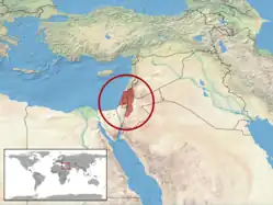 Cette espèce se rencontre en Israël, dans le sud-ouest de la Syrie, en Palestine et dans le nord-ouest de la Jordanie. Sa présence est incertaine au Liban[2].