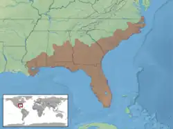 Cette espèce est endémique des États-Unis[1]. Elle se rencontre en Louisiane, au Mississippi, en Alabama, en Géorgie, en Floride, en Caroline du Sud, en Caroline du Nord et en Virginie.