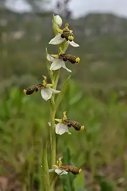 - Ophrys scolopax subsp. philippei (Gren.) H.A.Pedersen & P.J.Cribb[8],[9]
