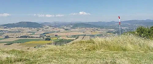- Panorama sur la zone oppidômique depuis le sommet du puy de Saint-Romain en direction de l'ouest et de l'oppidum de Corent