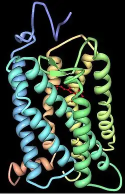 Les opsines forment une famille de protéines capables de réagir à l'énergie lumineuse grâce à sa liaison avec un chromophore particulier : le rétinal ou un de ses dérivés[2], formant ainsi une molécule mixte appelée rhodopsine. Ces protéines sont présentes dans l'ensemble du vivant, et sont impliquées dans la grande majorité des processus de photosensibilité.