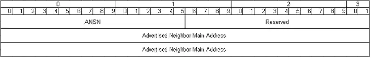 - ANSN (advertised neighbor sequence number) » : entier incrémenté à chaque changement de topologie. Il permet de ne pas tenir compte des informations obsolètes, pour tenir les tables le plus à jour possible.