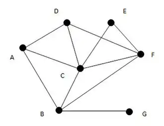 Si on prend le nœud B, les nœuds C et F couvrent l'ensemble des nœuds voisins à deux sauts. Cependant, le nœud C est sélectionné en tant que MPR car il a 5 voisins alors que le nœud F en possède 4 (on dit alors que le degré de C est supérieur au degré de F)[1].