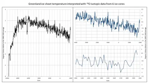 - ↑ (en) Zeke Hausfather, « Factcheck: What Greenland ice cores say about past and present climate change », sur carbonbrief.org, (consulté le )