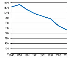 - 1 2 (sr + en) « Livre 20 : Vue d'ensemble comparative de la population en 1948, 1953, 1961, 1971, 1981, 1991, 2002 et 2011, données par localités) » [PDF], pages du recensement de 2011 en Serbie - Institut de statistique de la république de Serbie, (consulté le )