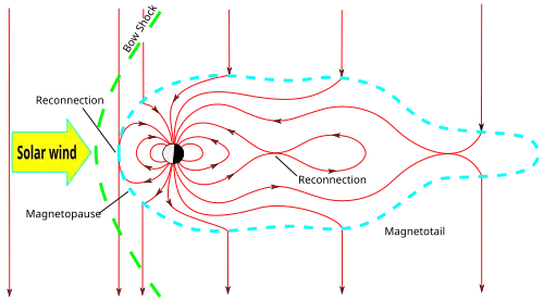 Dix ans plus tard, en 1931, Sydney Chapman et Vincenzo C. A. Ferraro publient un article, A New Theory of Magnetic Storms, qui tente d'expliquer le phénomène des orages magnétiques[12],[17]. Ils y argumentent que lorsque le Soleil entre en éruption, il émet également un « nuage de plasma ». Ce plasma voyage à une vitesse d'environ 800 km/s et atteint la Terre en un peu plus de deux jours. Le nuage comprime alors le champ magnétique terrestre[18].