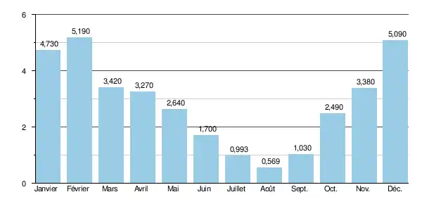 Le module de la rivière au Deschaux est de 2,86 m3/s.