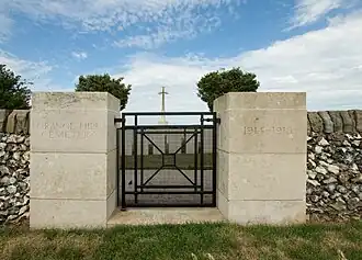 Ce cimetière a un plan quasi carré de 20 m de côté et est entouré entièrement clos par un muret de silex. Il a été conçu par l'architecte britannique George Hartley Goldsmith (d).