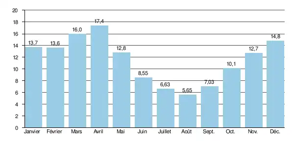 | Moyenne annuelle la plus grande : 15,4 m3/s (1995) | ||||||||||||