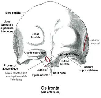 Le bord supra-orbitaire (ou bord supra-orbitaire de l'os frontal ou arcade orbitaire) est le bord supérieur de l'orifice orbitaire formé par le bord saillant situé entre la partie convexe supérieure dite portion frontale et la partie inférieure horizontale dite portion orbito-nasale de la face antérieure de l'os frontal.