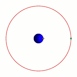 - ↑ Les périodes et vitesses orbitales sont calculées à partir des relations 4π2R3 = T2GM et V2R = GM, où : R est le rayon de l'orbite en mètres ; T est la période orbitale en secondes ; V est la vitesse orbitale en m/s ; G est la constante gravitationnelle, environ 6,673 × 10−11 Nm2/kg2 ; M est la masse terrestre de la Terre, environ 5,98×1024 kg (1,318×1025 lb).